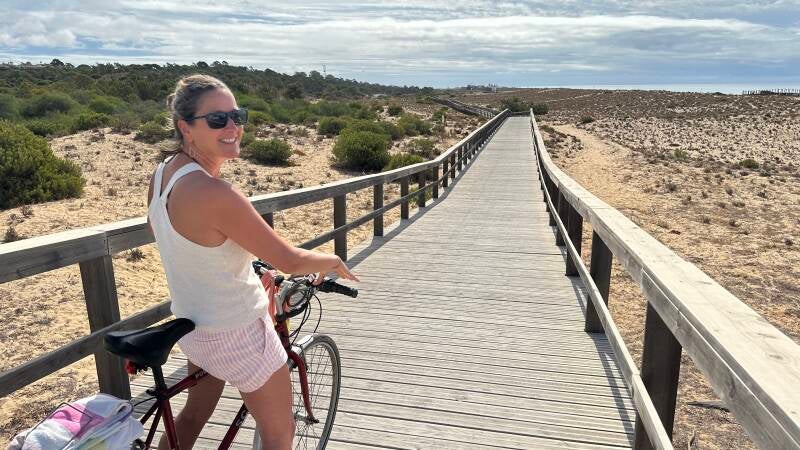 Vanaf Praia de Garrão Nascente loopt er een houten fiets- en wandelpad helemaal naar Faro, als je zou willen. Maar onderweg kom je ook andere restaurants en strandtentjes tegen. Een ABSOLUTE aanrader als je even lekker wil fietsen . Bandjes oppompen en gaan!